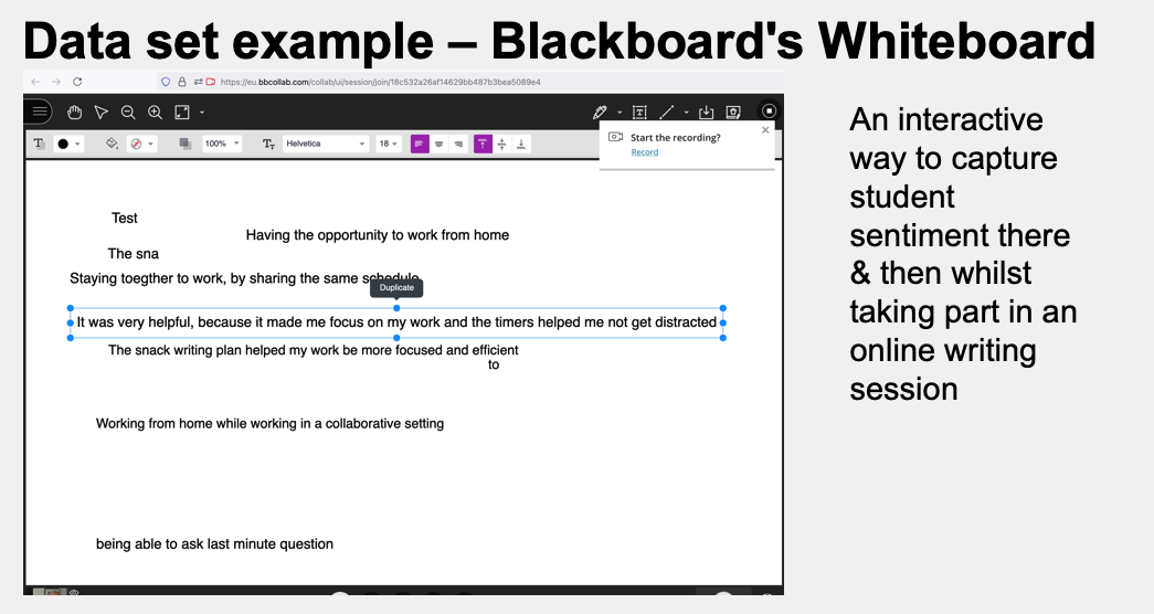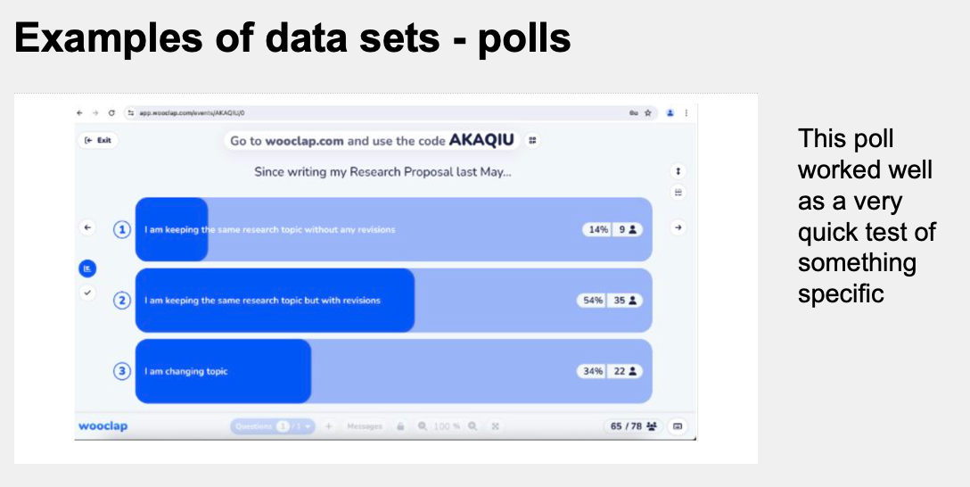 This has been written up as a more detailed presentation here and a research report here. (UAL staff access only).